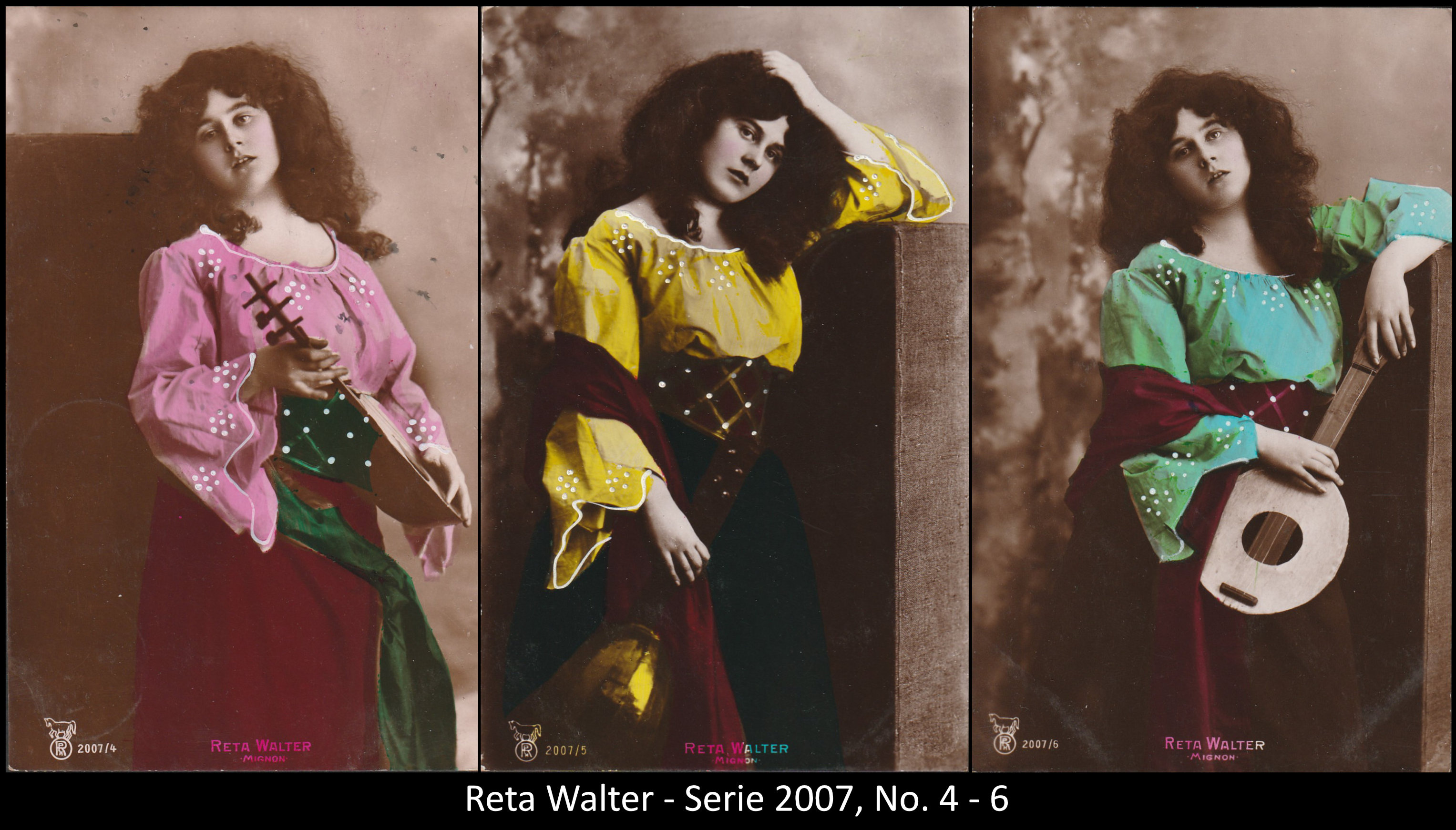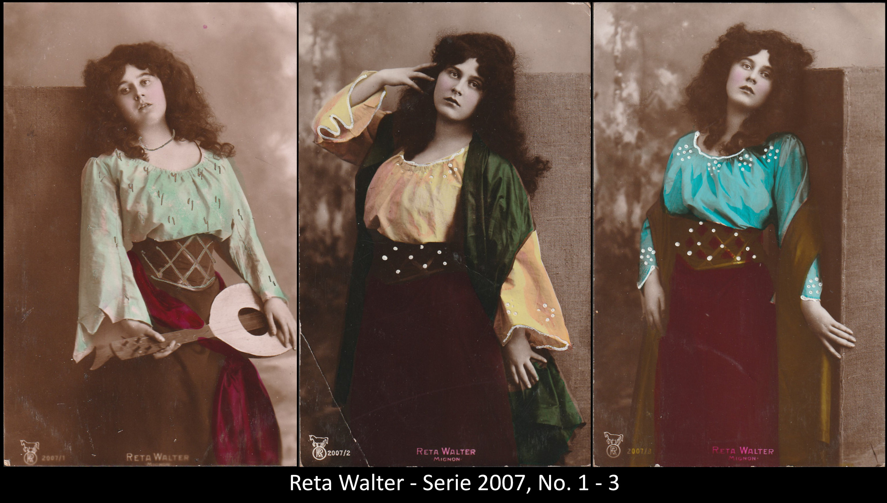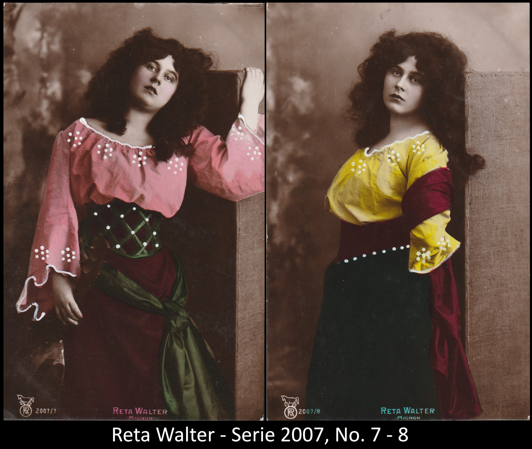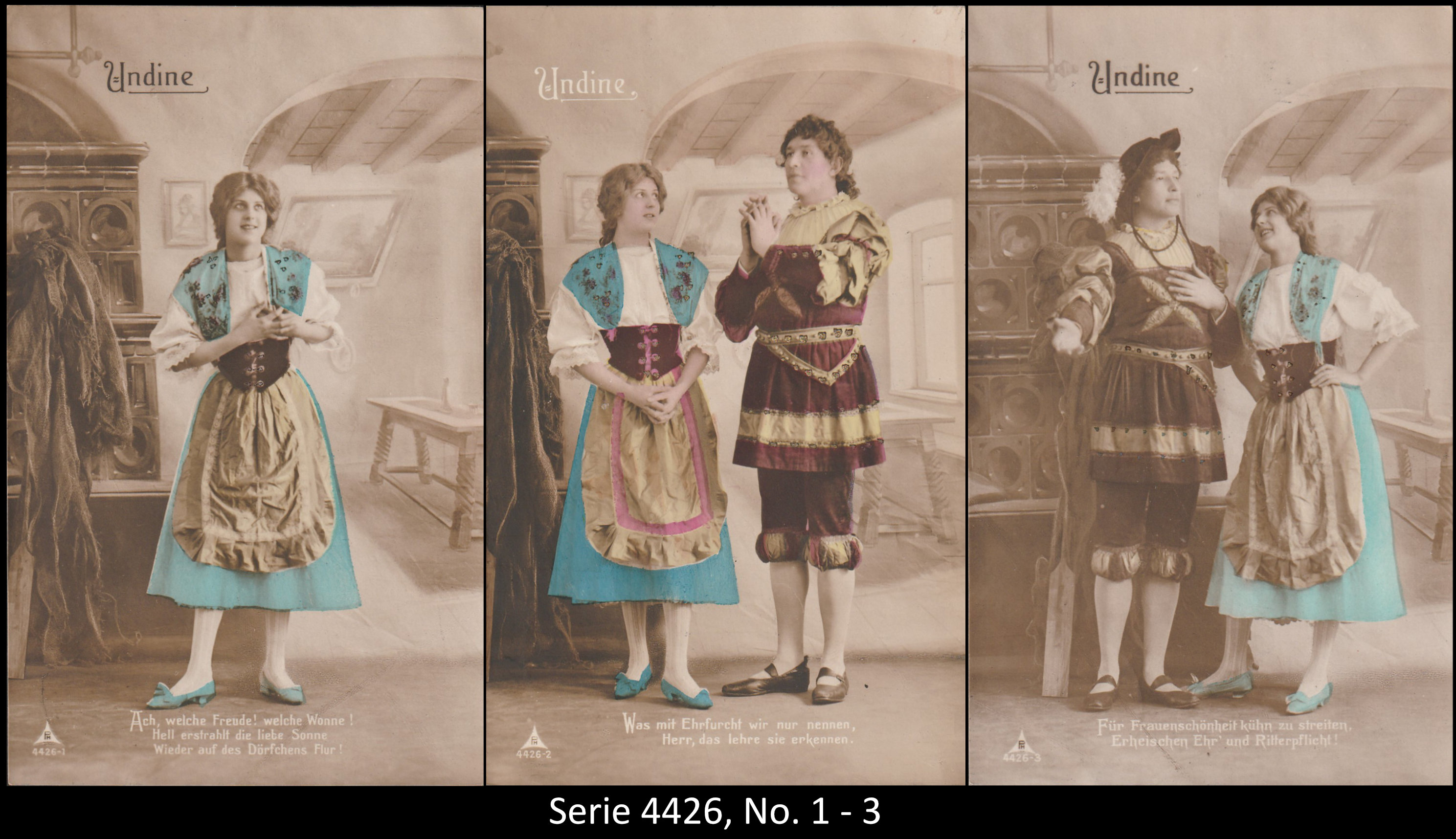 A series consisted mostly of 6 (5, 9 or 12, see gallery) cards which were often sent in succession. Unfortunately, many series are not complete. Almost always the same scene was photographed from different angles. The cards from one series were also colored differenty.The themes are mostly of departure, longing, joy or sorrow.
